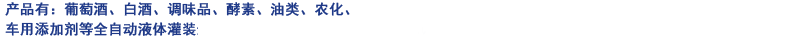 主要产品:葡萄酒、白酒、调味品、酵素、油类、农化、车用添加剂等全自动液体灌装生产线一站式供应商